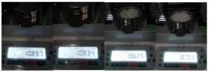 - 將防風(fēng)盤、支架、樣品盤一一裝好,接通電源,按下開機(jī)鍵,顯示屏進(jìn)入開機(jī)界面,首先按去皮鍵減去樣品盤重量,后將100g砝碼放入托盤進(jìn)行校準(zhǔn);