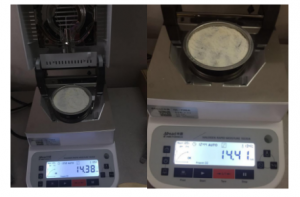 測(cè)試樣品:取5克大米,用粉碎機(jī)打成粉末狀,置于不銹鋼托盤(pán)中平鋪均勻,溫度設(shè)置120℃用儀器進(jìn)行加熱,約12分鐘后檢測(cè)結(jié)束,檢測(cè)數(shù)據(jù)顯示14.38%;